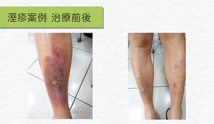 陳先生目前還在治療,通常需要3個月到半年的時間,他腿部的問題已經好了,但身體開始發溼疹,他最早是從頭開始發作,2個耳朵紅腫,持續吃藥以後,耳朵的紅腫就退了。他告訴我,有天晚上睡覺的時候,耳朵突然有溼溼的感覺,原本以為是睡覺流口水,結果是外耳的地方有水,病患覺得很神奇,等到早上起來,發現耳朵的紅腫已經消掉了,這就是溼毒排出來了。