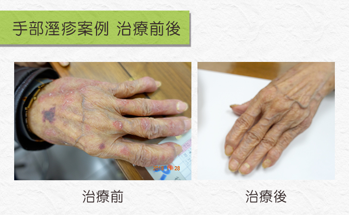 前後治療約4個月,老太太的皮膚症狀大幅改善,皮膚表面已恢復正常,僅有輕微脫屑而已,平時再擦含油脂的產品保護即可。臨床上我也看到不少老人家復原拖至半年至1年以上不等,我覺得這位老太太算是復原的很快,主要應是女兒仔細照料有關,我也替他覺得開心。