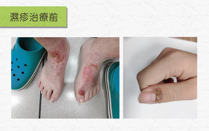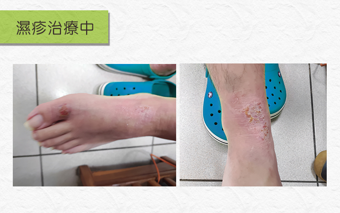 當阿光發現情況不對勁時,雖然有趕緊就醫治療,擦類固醇藥物,但是病情卻斷斷續續沒有完全好過,於是上網搜尋濕疹的相關療法,找到聖元中醫診所而前來就診。