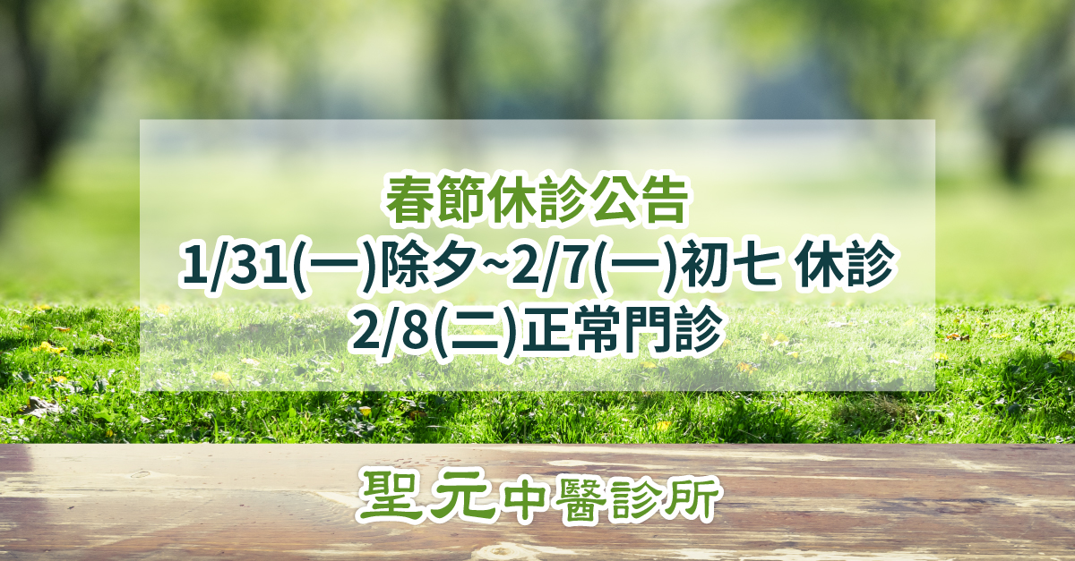 1/31(一)除夕~2/7(一)初七 休診